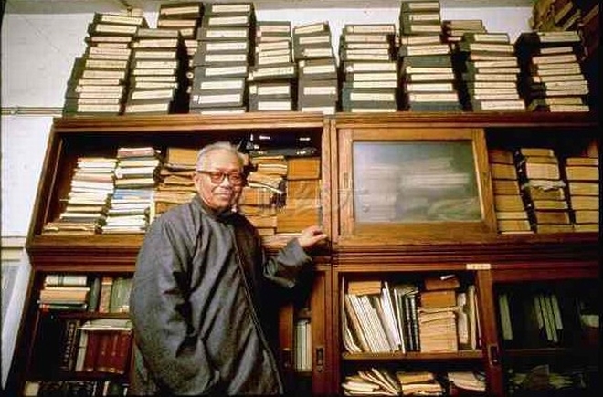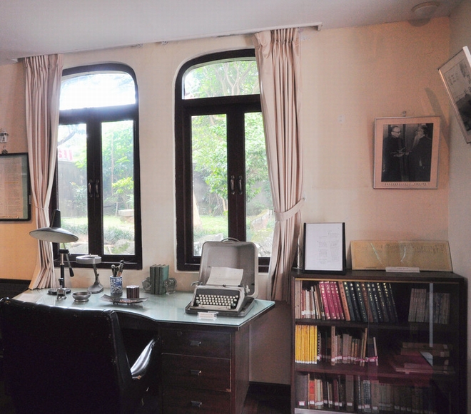 “我要一個(gè)好書齋,一個(gè)好煙斗。”這是林語(yǔ)堂40歲時(shí)的理想。他的書房中鋪著紅色的地毯,擺著黑色的沙發(fā),墻壁上是他與張大千、錢穆的合照,兩面墻壁前是寬大的書柜,保存著他的4000多種藏書。門口處就是一張他親自設(shè)計(jì)的寫字臺(tái),臺(tái)子的前面凹進(jìn)去一塊弧形,使他略顯肥胖的身軀在寫作的時(shí)候更加舒適一些。他在書桌前的經(jīng)典姿態(tài)是,腳踏著半開的抽屜,一手拿書,一手持煙斗。